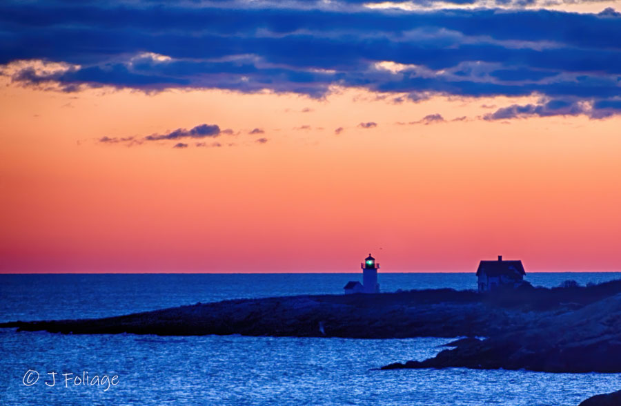 Within a few minutes of the moon setting over Rockport’s motif number one, I stood up and stretched, and went over to the other side of the headlands to photograph the sunrise coming up behind Straitsmouth Island Lighthouse.