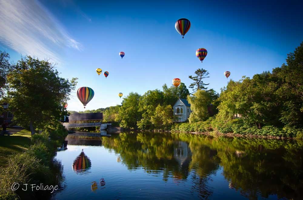 - The River Run: If winds allow, balloons love to float toward the Quechee Covered Bridge, over Dewey’s Pond, and occasionally down into the Quechee Gorge.